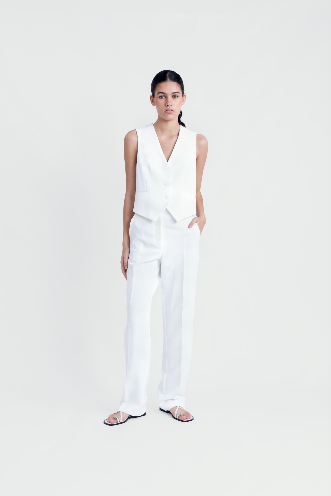 chaleco recto blanco 89% poliester reciclado 11% elastano