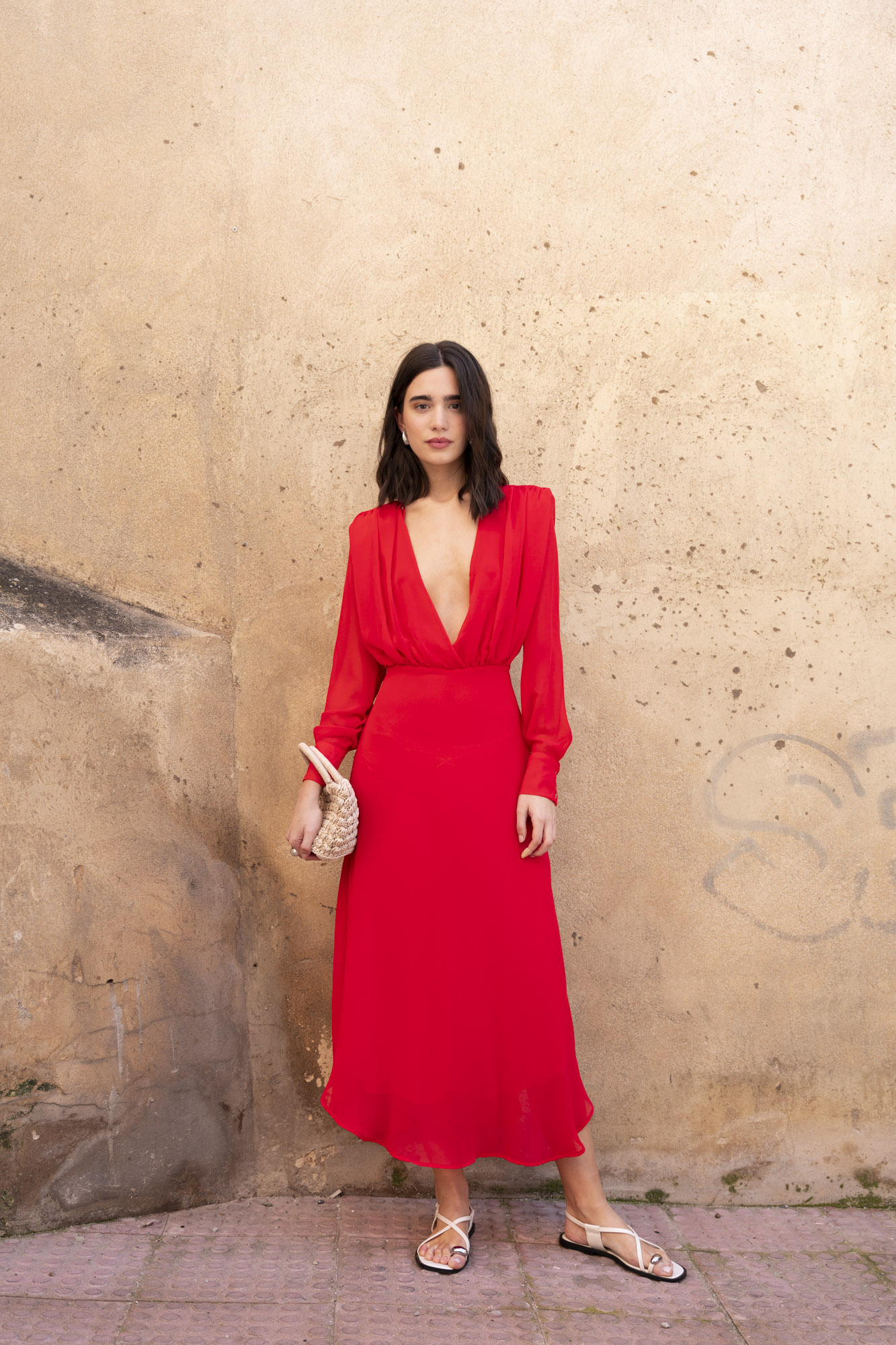 Vestido midi gasa 54% poliester 46% poliester reciclado